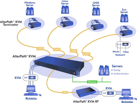 AlterPath KVM är en CAT5-baserad KVM switch som ger administratörer en KVM-lösning för administration av Windows, Sun och Linux/UNIX servrar med enkel kablering, avancerad säkerhet och expansionsmöjligheter för framtida behov.