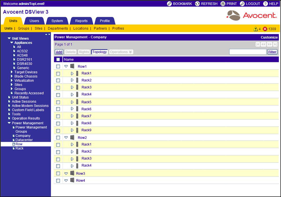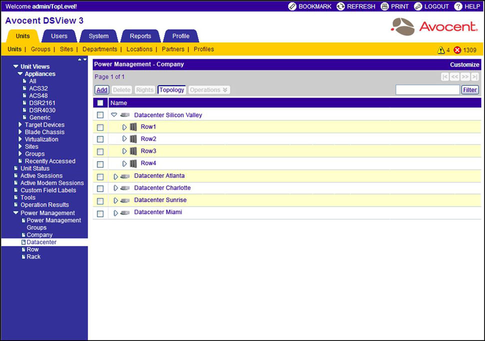 | Övervaka totala energikostnaden för hela IT-verksamheten DSView 3 Power Manager gör det möjligt att beräkna och jämföra kostnader över flera olika nivåer (rack, rad, datacenter eller hela företaget)