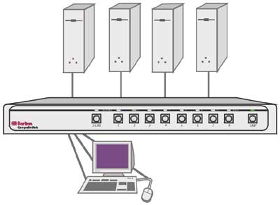 Raritan CompuSwitch är trots sitt låga pris en högkvalitativ serverväxel med funktioner som annars oftast finns bara på betydligt dyrare växlar. Ni styr valet av server via tangentbordet eller väljer via knappsats på växeln.
