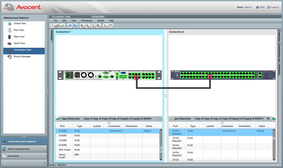 - DSView ® 3-liknande funktionalitet – startar KVM- eller seriella sessions till tillgångar sammankopplade med Avocents hårdvara. Gör om verktyget från att vara för visuell planering och loggning till att vara en funktionell integration av ermiljö. Maximerar värdet av befintliga Avocent-investeringar.