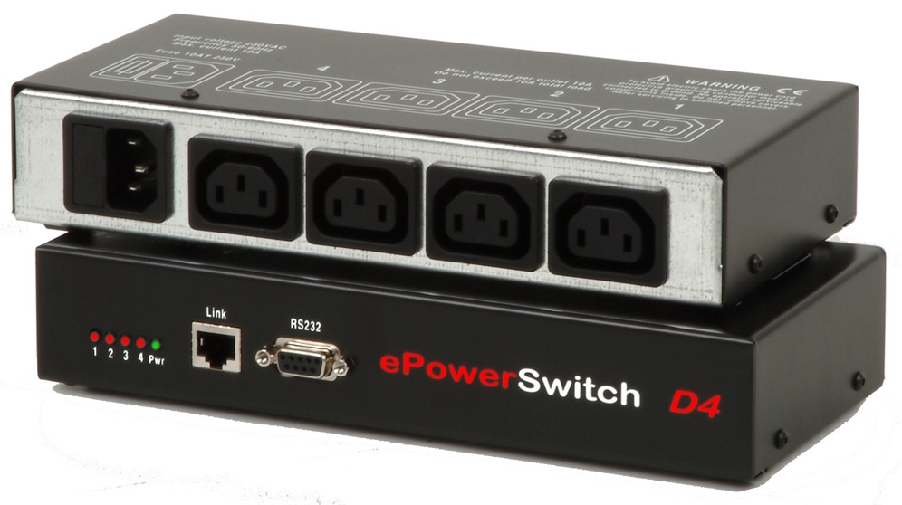 Strömdosa med inbyggd webbserver. EpowerStrip 4 används generellt för att stänga av eller starta upp till fyra datorer, mindre servrar, eller andra enheter som ska styras via IP eller RS232. Enheten kan ligga löst, monteras i 19″ rack eller skruvas fast på väggen.