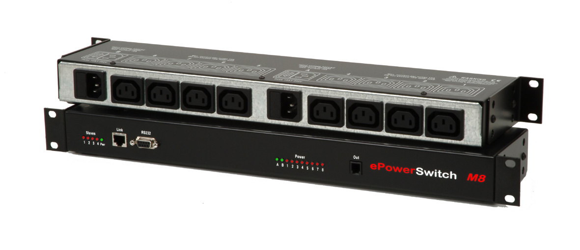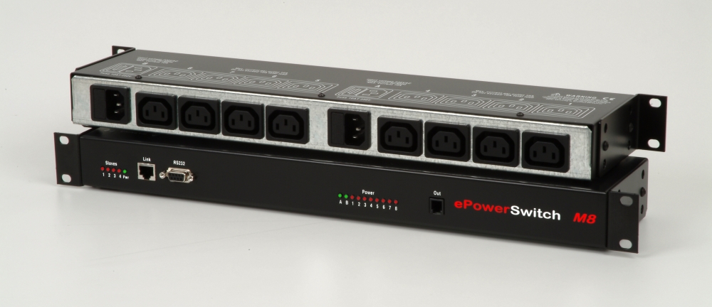 Med ePowerSwitch X-Slave kan man kontrollera upp till 8 individuella strömutgångar via RS232 anslutning. Antalet utgångar kan ökas genom att kaskadkoppla till 16 enheter och på så sätt få 128 strömutgångar. Varje utgång kan namnges och få separata lösenord och styrning för ”Redundant Power Control”. Utgångarna kan kontrolleras individuellt eller i grupper.