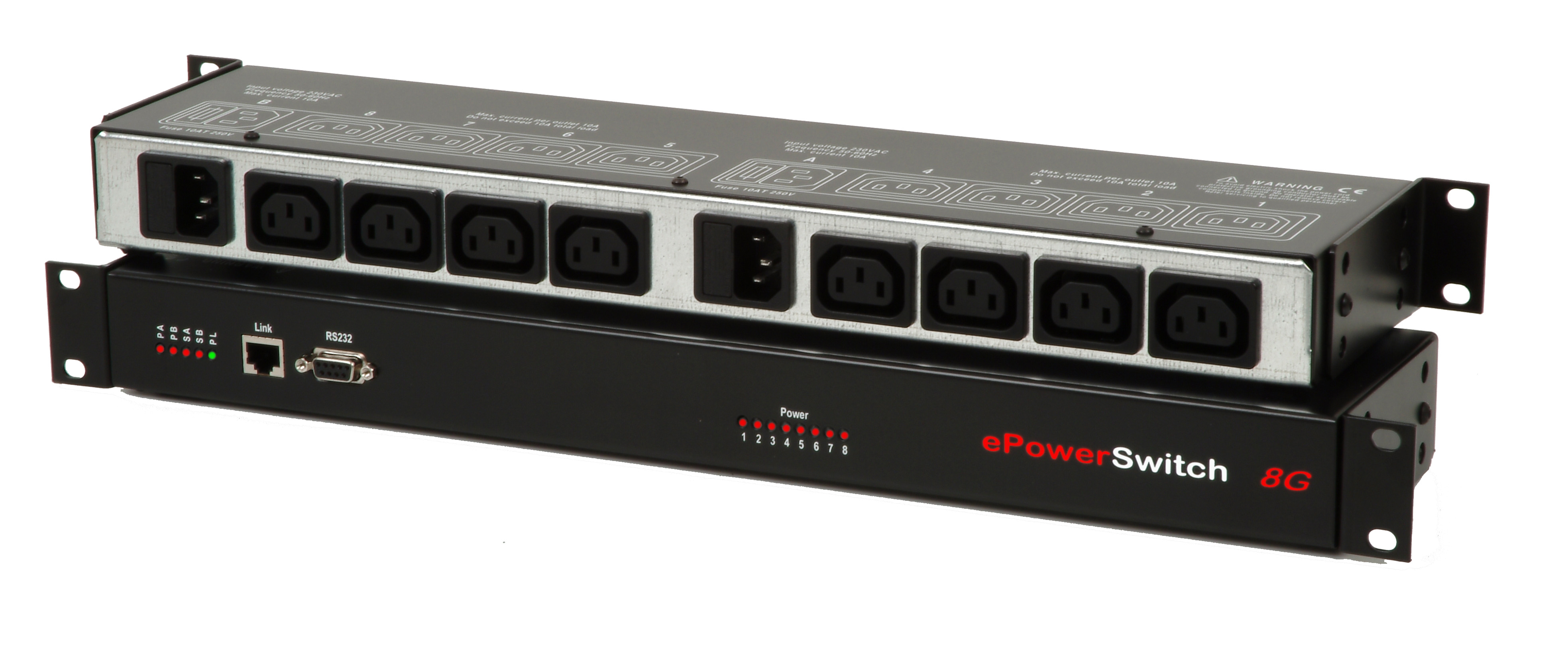 Guard ePowerSwitch 8G är en strömkontrollenhet för styrning av ström för åtta oberoende enheter via Internet eller lokalt via RS232 anslutning. Man kan även styra åtta IP-enheter (server, router, kameror, ) och automatisk starta om enheter som låser sig. Denna enhet kan monteras i 19″ rackskåp.