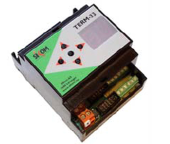 Extra nod med plintanslutning. 1 vxl. Reläkontakt 230VAC/16A. 1 tempgivaringång, 1 detektoringång.