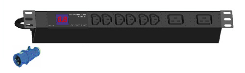 10xIEC320-C13 uttag, 1xDIN60309 16A intag, 19″