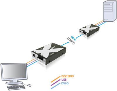 AdderLink X-DVI tillåter användare att distribuera kontroll av alla datorer som använder DVI-video och USB för gränssnittet till tangentbord och mus. X-DVI:n kan leverera perfekt digital video på avstånd upp till 50 meter och upplösningar upp till 165 Mpixels per sekund (t.ex. 1920×1200 vid 60Hz eller 3840 x 2400 vid 17Hz). I drift är X-DVI verkligen plug-and-play, och ger full EDID-data från skärm till dator för att försäkra att er hårdvara alltid är inställd för att leverera optimal visning.